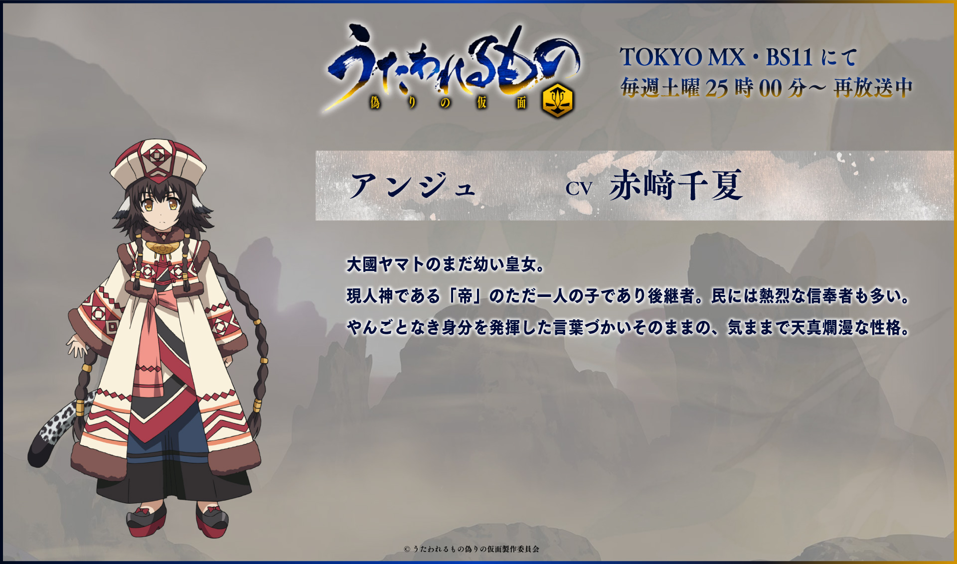 Twitter 上的 うたわれるもの公式 うたわれるもの 偽りの仮面 登場人物 アンジュ 声 赤﨑千夏 大國ヤマトのまだ幼い皇女 現人神である帝のただ一人の子であり後継者 民には熱烈な信奉者も多い Http T Co Saaupcsjxf うたわれ Http T Co Llyuvtdrsh